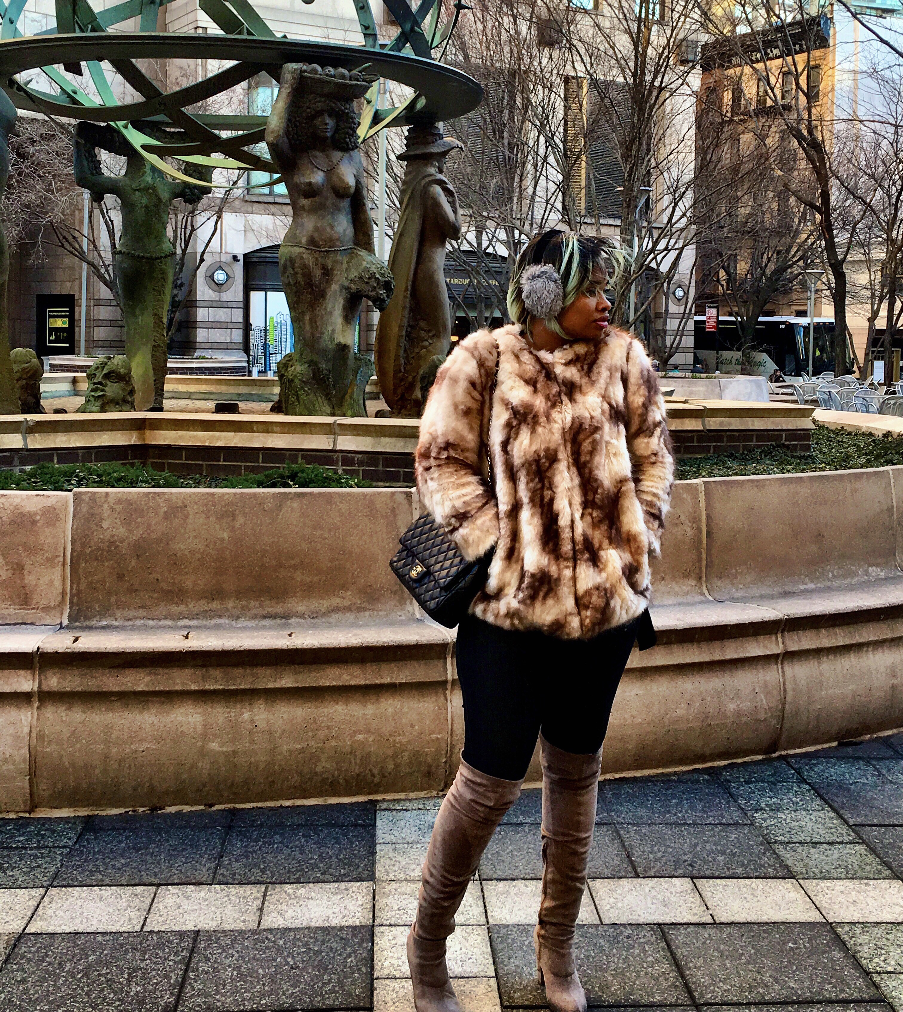 Pairing a standout coat with a pair of thigh high boots is my go to. It gives LOOKS!